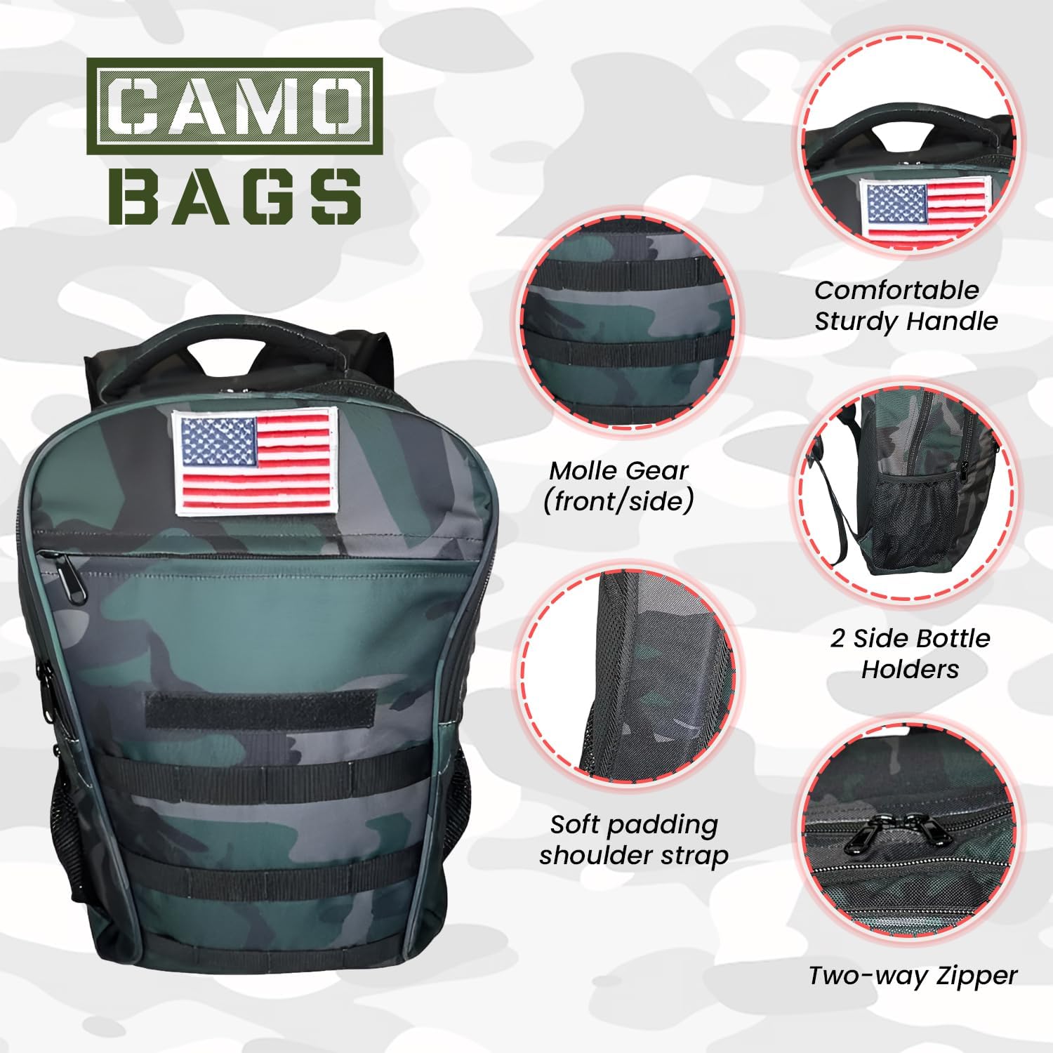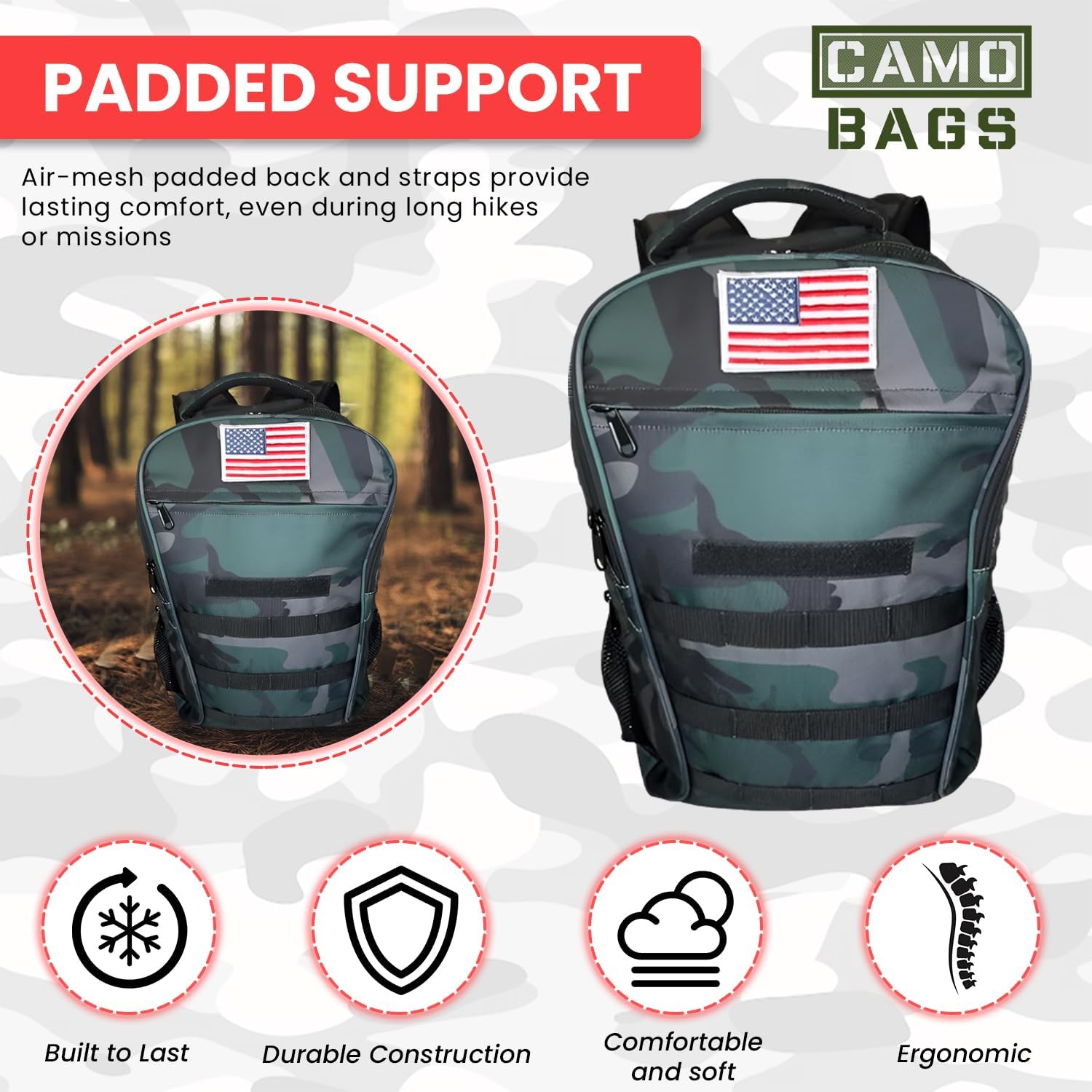 - Backpacks with MOLLE System: There are Multifunctional webbing hole to hang small items like glass and additional bags. Perfect to use when hiking, traveling, camping, trekking and other outdoor activities, a great pack for journey