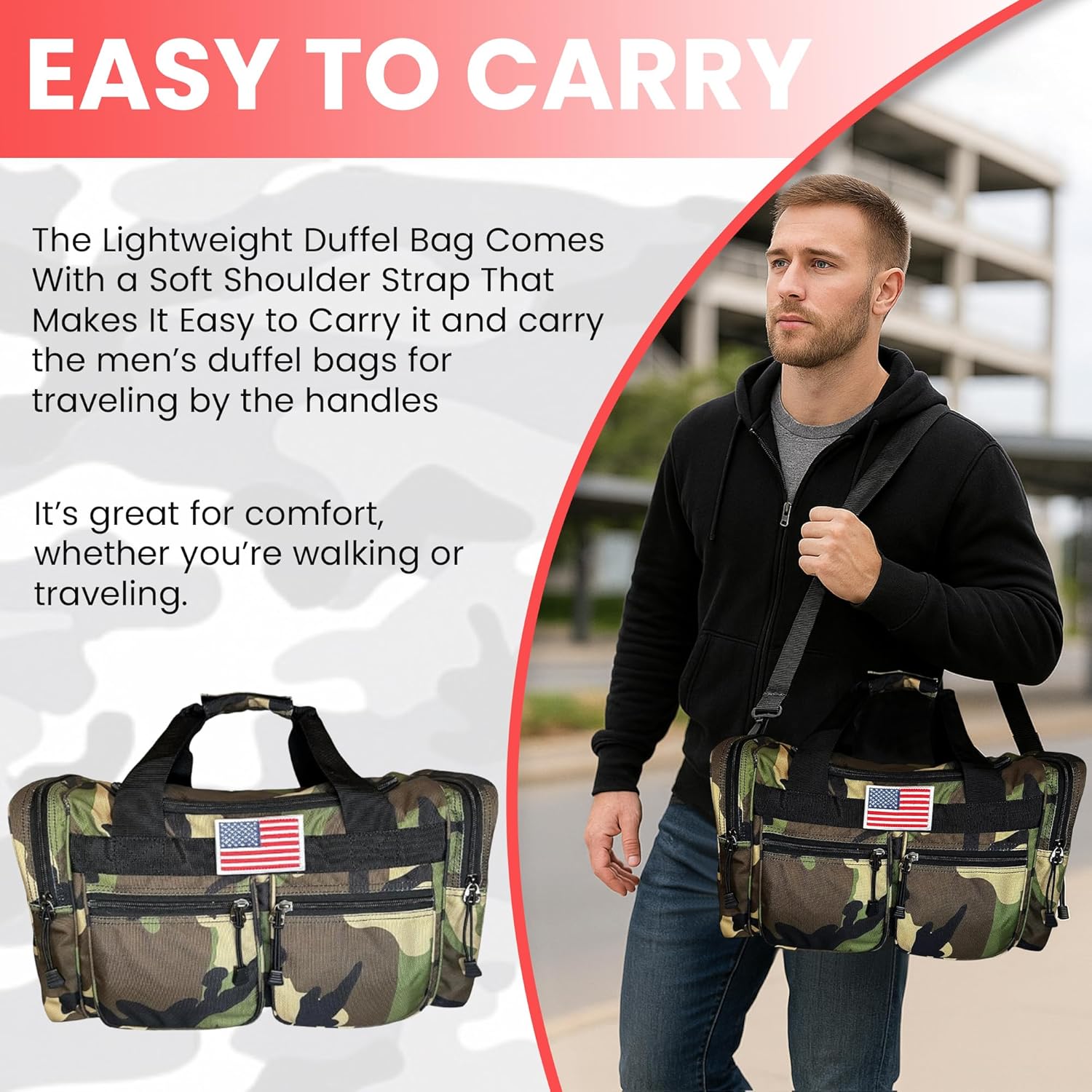 - Adjustable ergonomic removable shoulder strap.
