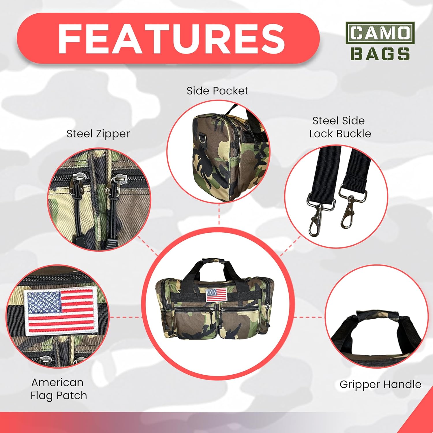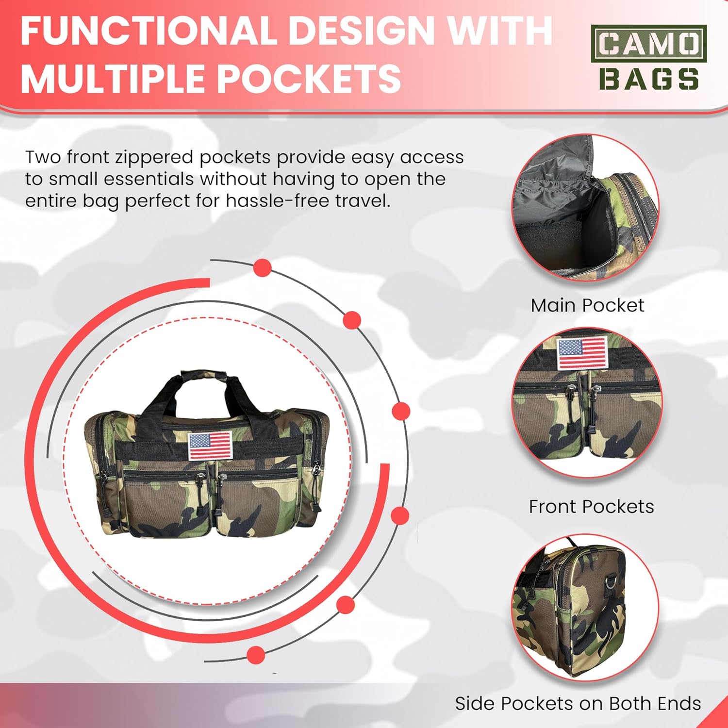 - Two side zipper secured compartments.
