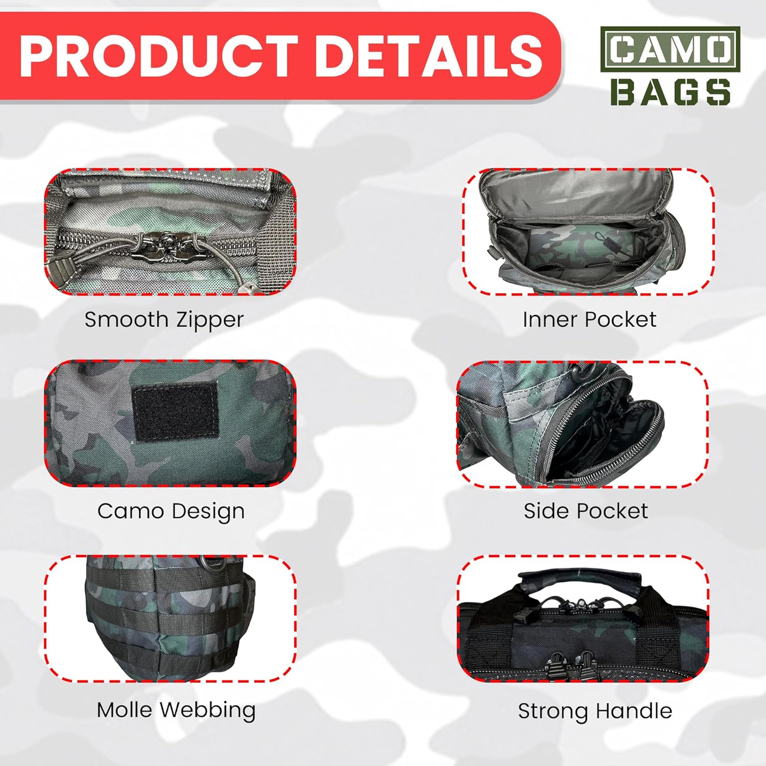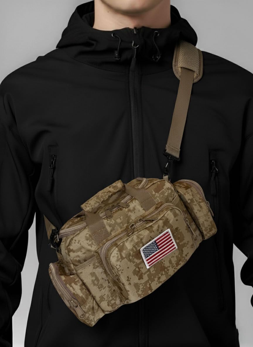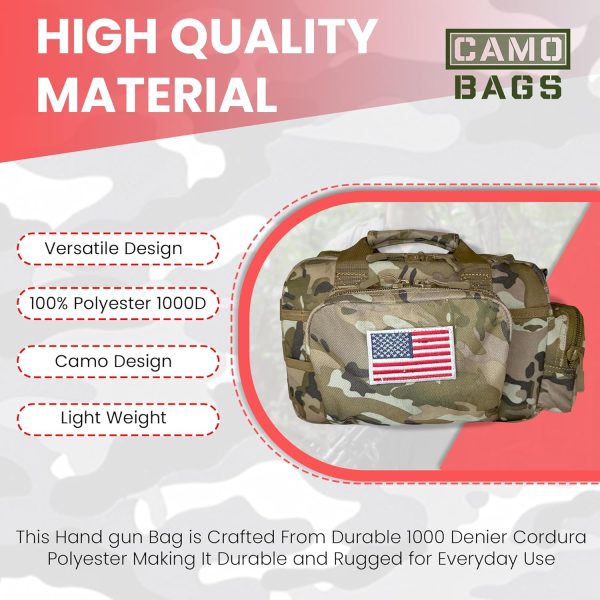 - STYLISH & FUNCTION – This shooting bag for pistols features Molle webbing strap on the left and the rear. The Bonus Molle pouch allows flexible replacement by your needs. It is also ideally used as Camera bag and multi-purpose bag for varied activities such like hiking and commuting etc.