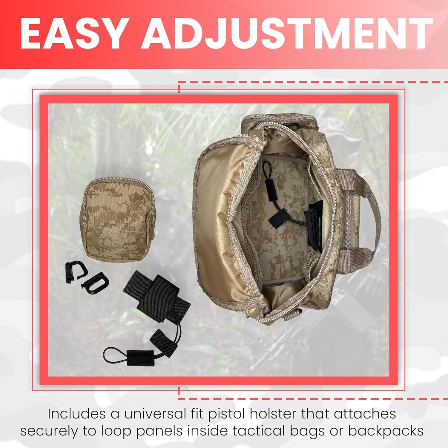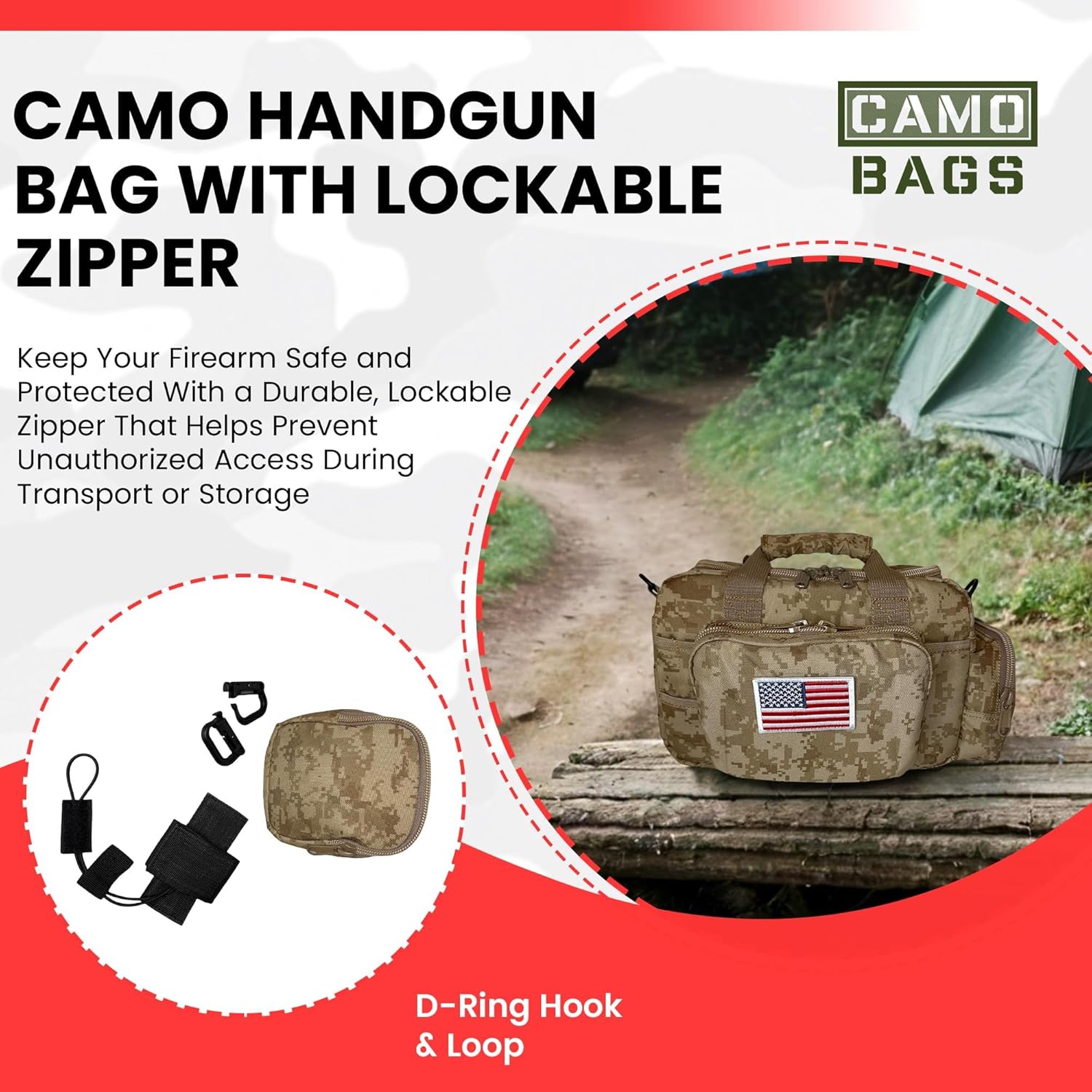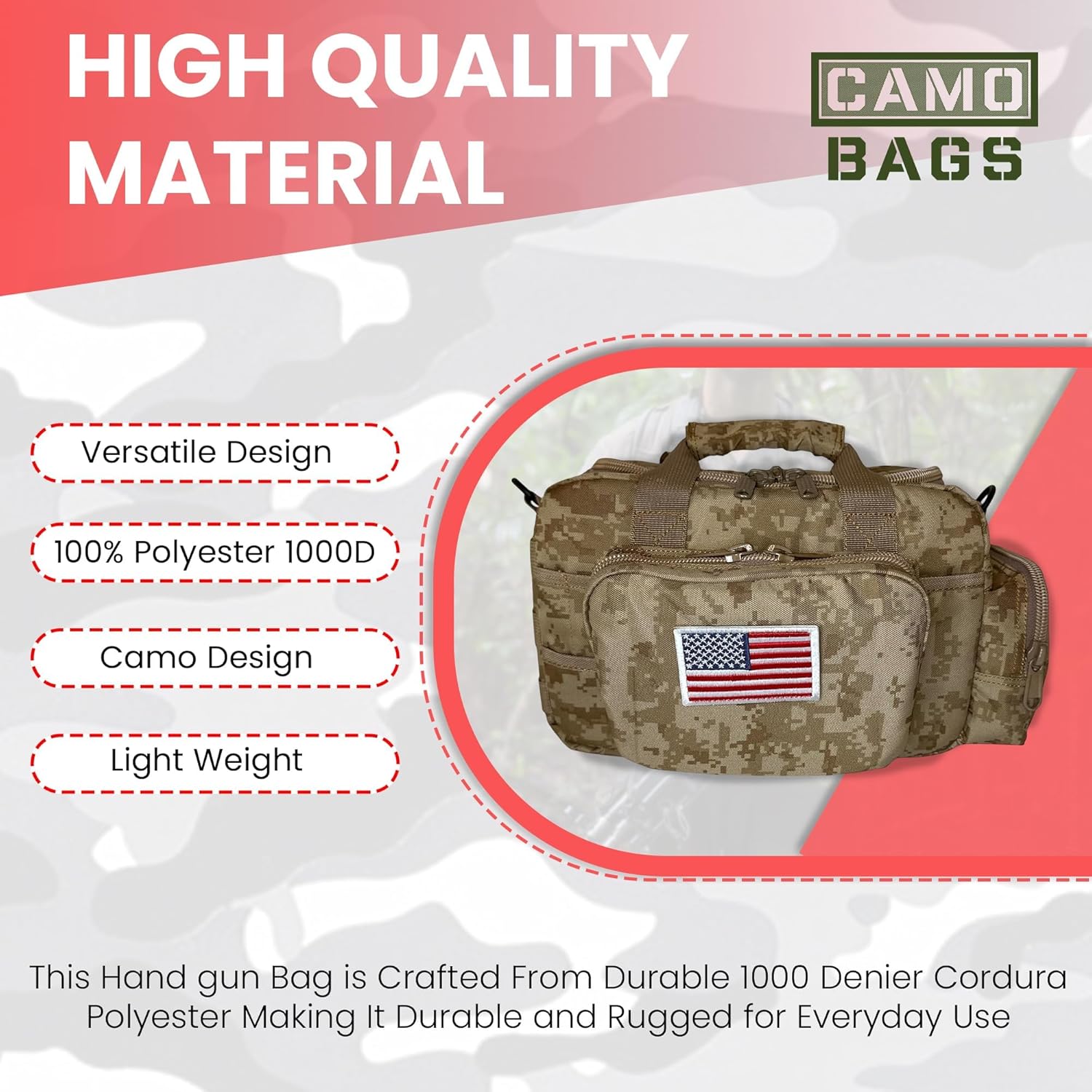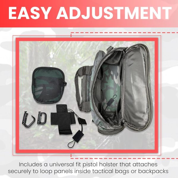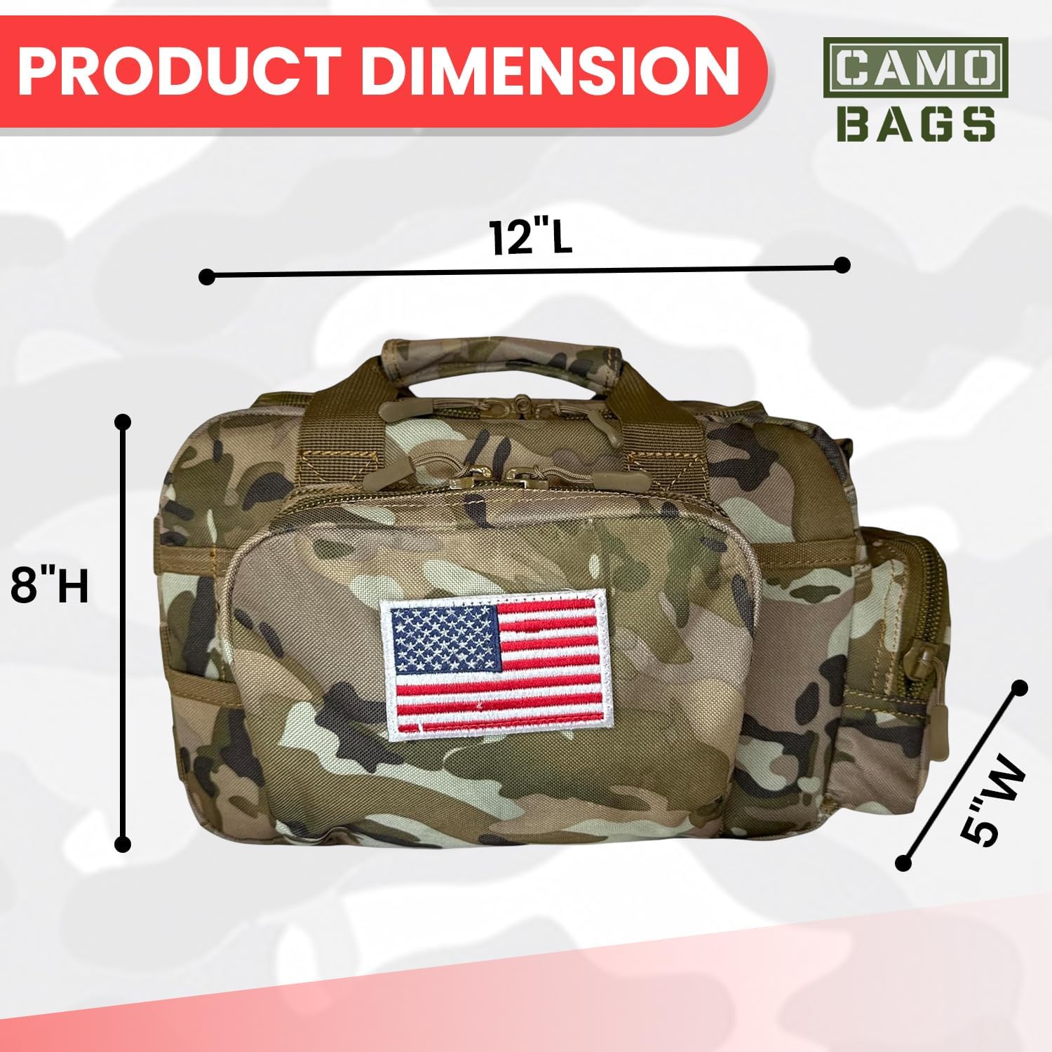 - WHAT YOU‘LL GET – Pistol case bag for handguns/pistols/revolvers (main pocket: L12”xW5“xH8“/). Extra accessories as showed in the main photo: #1- 1x Embroidered USA flag patch (3.1″x2.2″), #2- 1x Molle utility pouch with 2 vertical snap strap (L5“xW2.5“xH6″), #3- 1x Hand Gun Universal Holster that fits most popular pistol sizes (designed to carry a pistol in tactical bag backpack with loop panel)