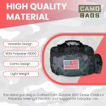 - DURABLE & UPGRADE SECURITY – Our Shooting Gun Bag is made of 1000D polyester fabric, which is robust, waterproof and yet lightweight. Reinforced sewn at all strength points are built to last. Sturdy dual zippers with lock hole (Dia.0.2″) fits most luggage lock, provides the reliable security for your firearms and ammos while transport to the shooting range. Ideal gift for gun owner