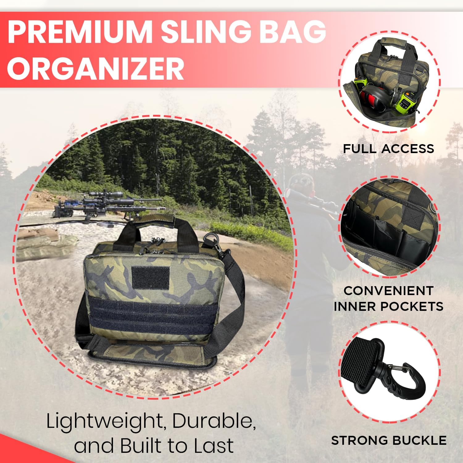 - ✔ ORGANIZED & ERGONOMICS – Pistol bags for handguns is special sized to store two handguns with interior zipper & thick padding. Plus 6x magazine storage slots are elastic to keep your all-size mags. Spacious front pocket for your eye/ear protection and essential gear with extra 5 sleeve pockets. Comfort carrying with hook & loop handgrip