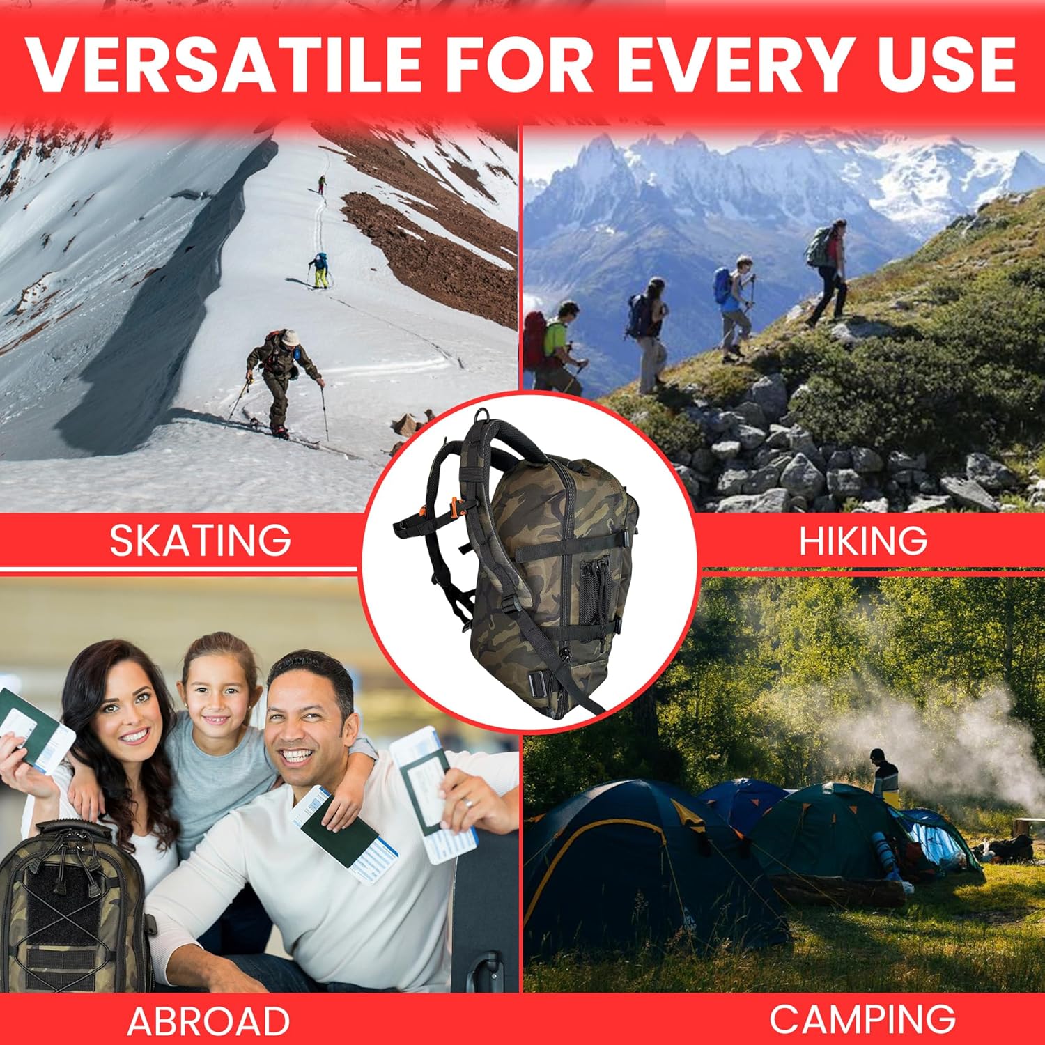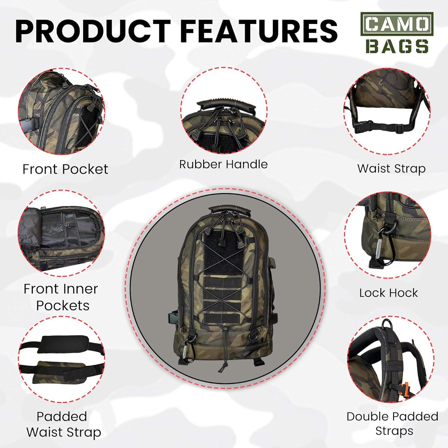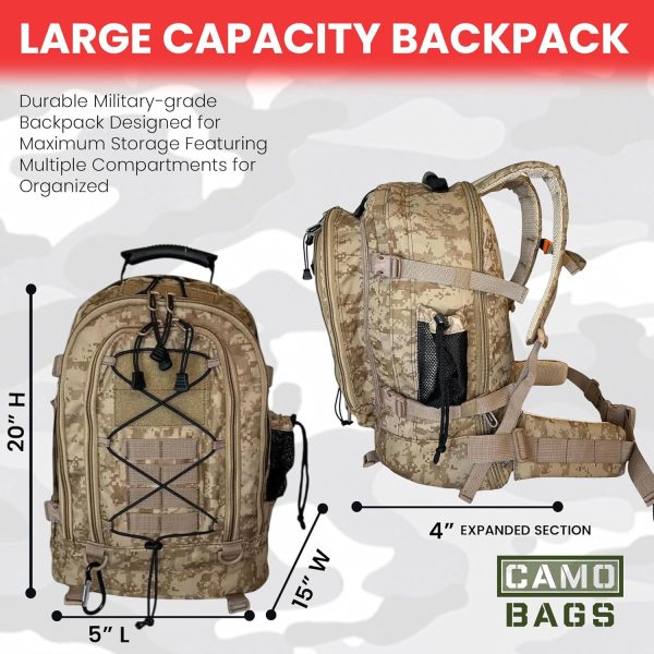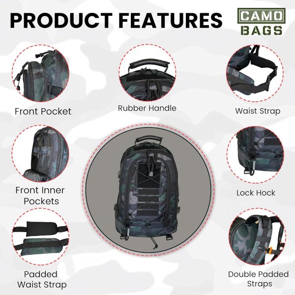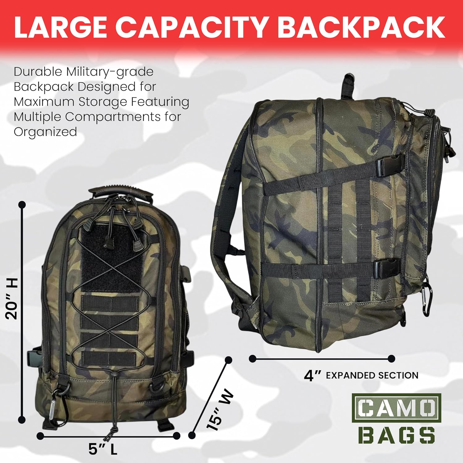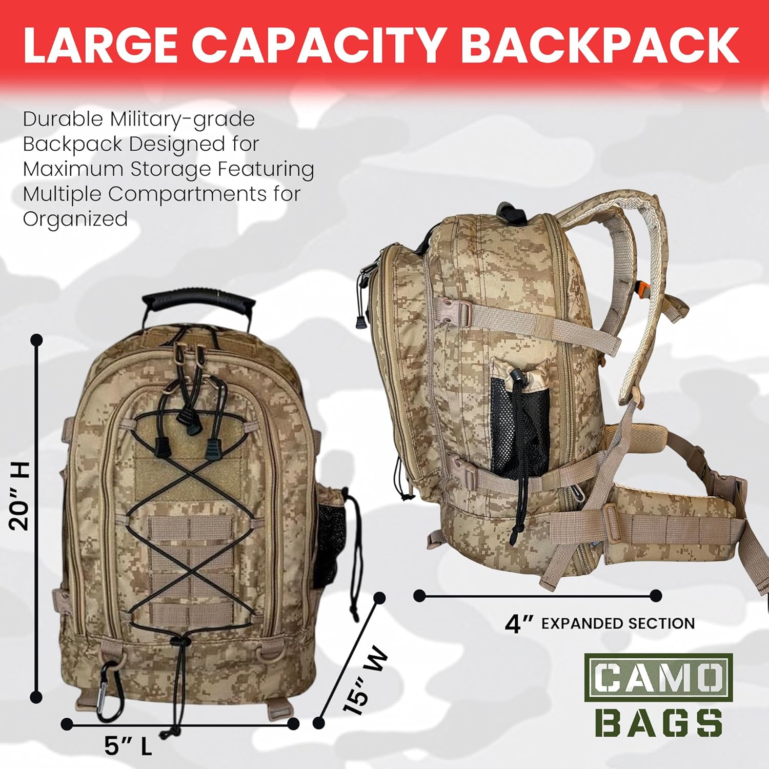 • The 3 Day Expandable Outdoor Large Backpack with Molle compatibility allows customizing the pack for your needs.