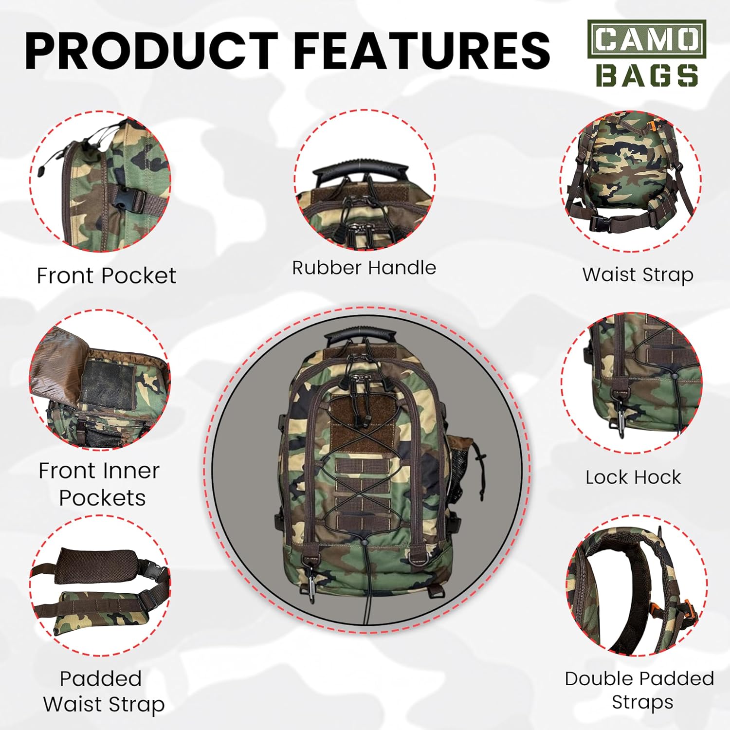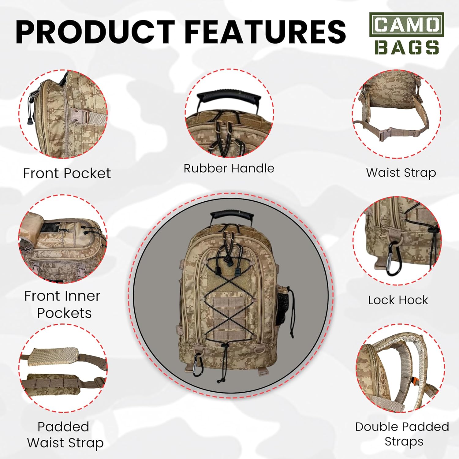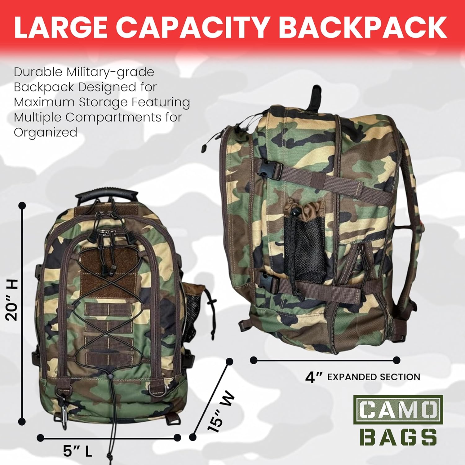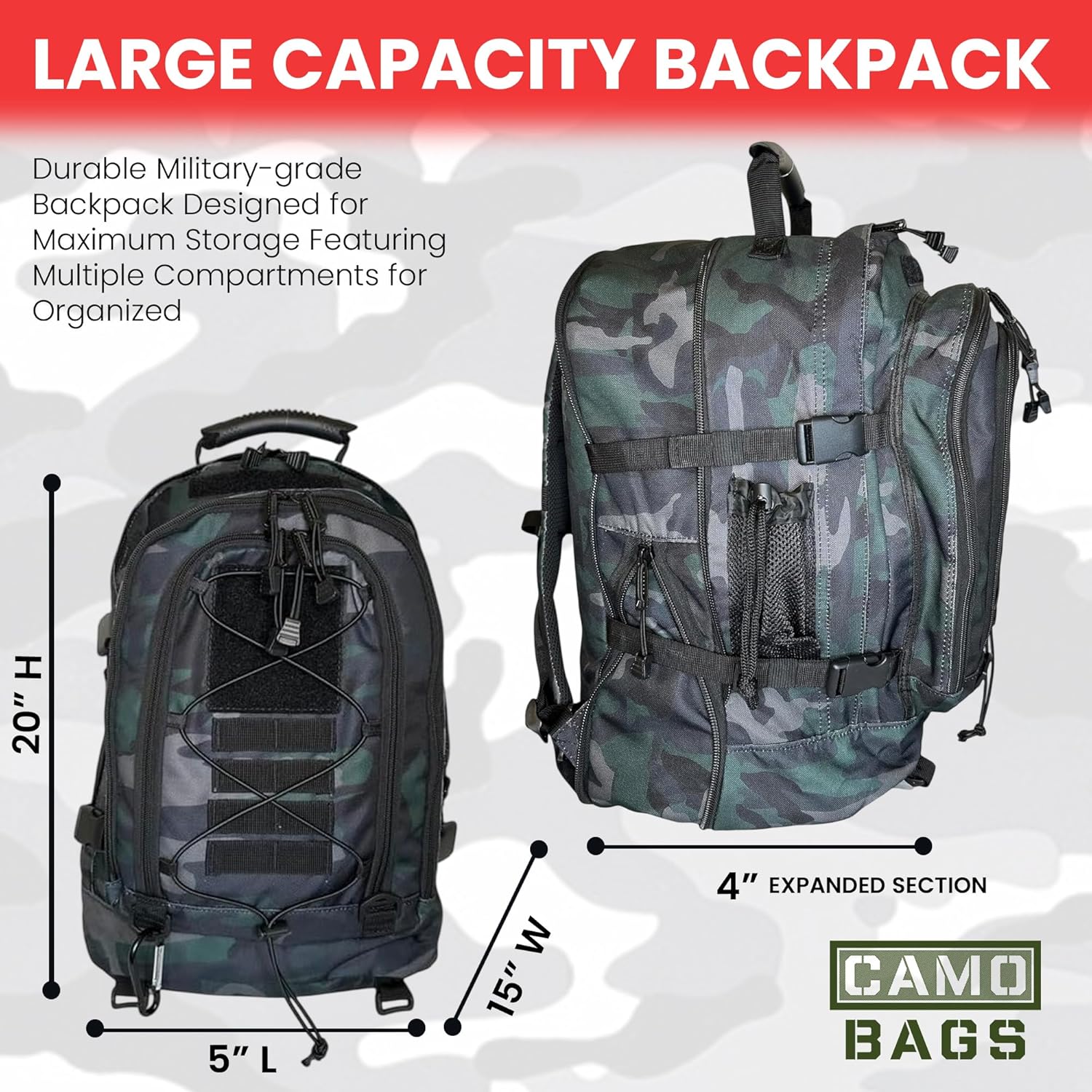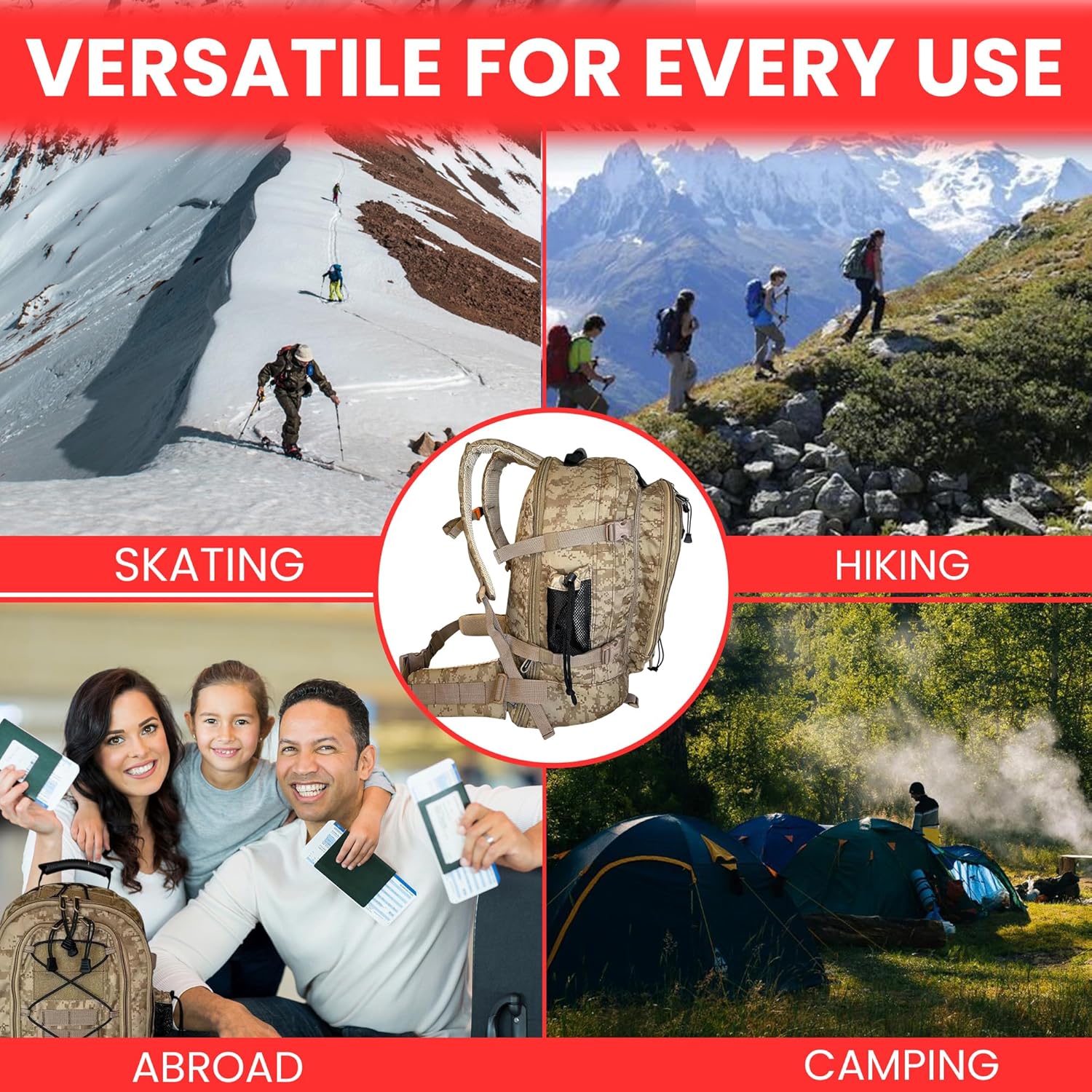 • The 3 Day Expandable Outdoor Large Backpack with Molle compatibility allows customizing the pack for your needs.