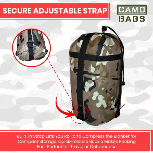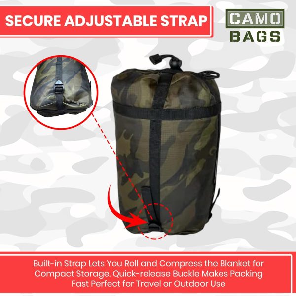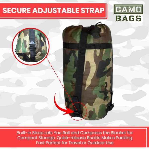 • MULTI-USE LINER: This essential piece of military survival gear provides warmth and insulation against most weather elements and temperature protection which makes for the ultimate camping and outdoor blanket. Camo Pattern is one-sided.
