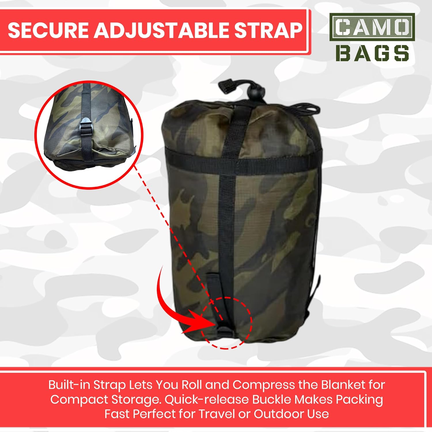 • VERSATILITY: Use as a quick-dry beach blanket, stadium blanket, make-shift survival shelter, sun canopy, hammock insulator, pillow, tent divider, privacy screen, emergency carry litter, seat cover, pet bed, disaster relief, concealment blind, carry satchel, backpacking blanket, sleeping bag or tent insulator, and much more.