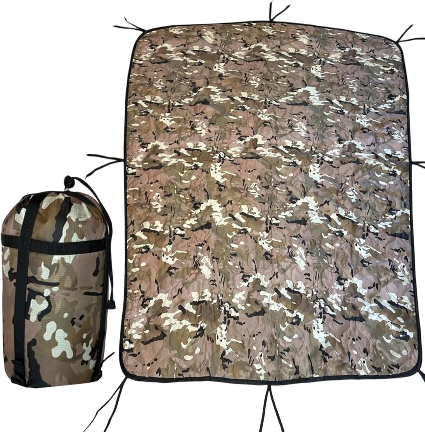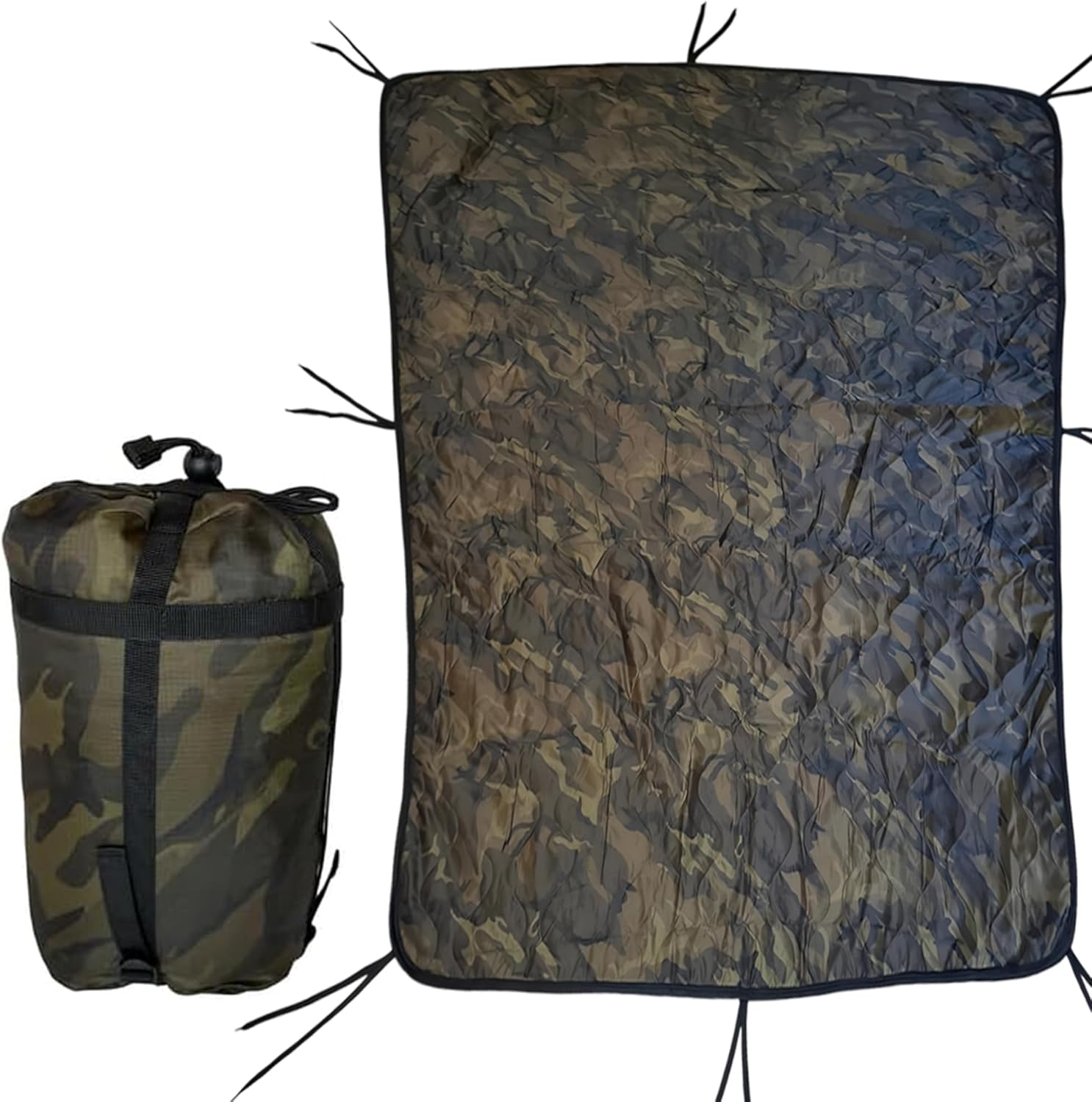 • MILITARY STYLE CONSTRUCTION: Tightly woven nylon fabric insulated with quick-dry polyester batting is reinforced with wave-pattern insulating quilting. Features 8 pairs of tie cords attached around edges with reinforced bar-tack stitching.