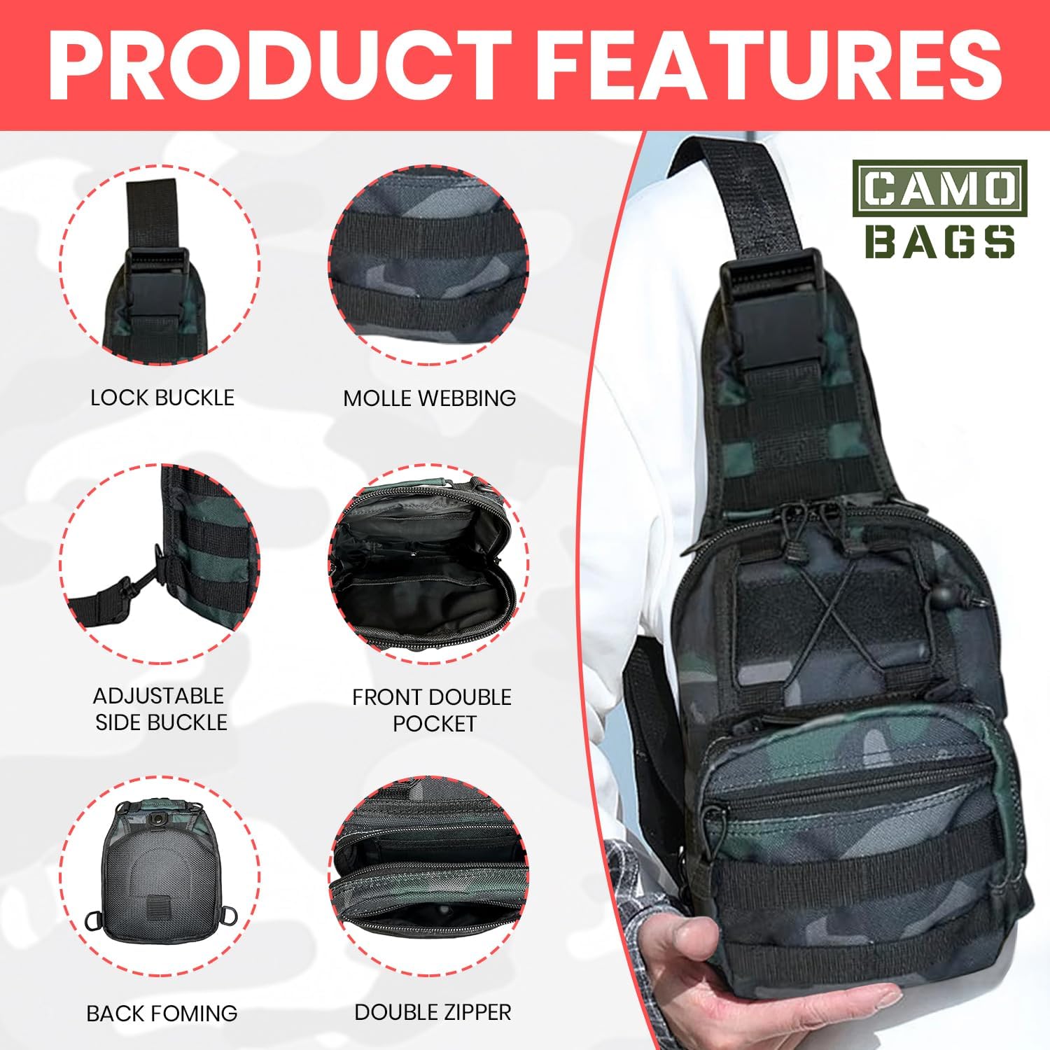- Use for sling pack, chest bag, hand bag, tactical cross body pack, pouch, first-aid kit, diaper bag and so on. It is very handy and convenient.
