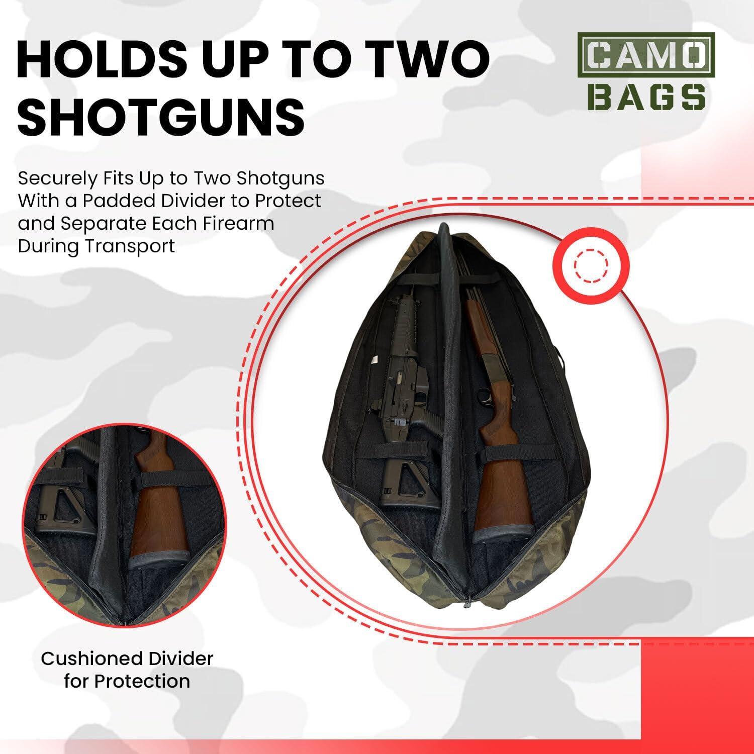Holds 1 or 2 Rifles: Interior removable divider enables the carrying of one or two rifles with adjustable strap to secure your guns stay in place. NOTE: it’s suggested to remove the gun accessories if you want to hold 2 rifles.